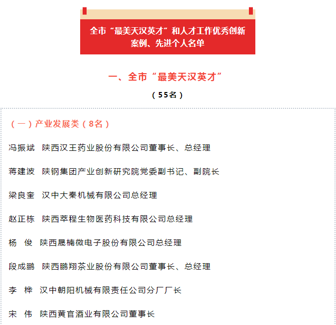 2月27日市委人才工作會議召開,全市55人被表彰為“最美天漢英才”、20人被表彰為全市人才工作先進個人、10個全市優秀人才創新案例獲表彰。漢中大秦機械有限公司總經理梁良奎榮獲全市“最美天漢英才”